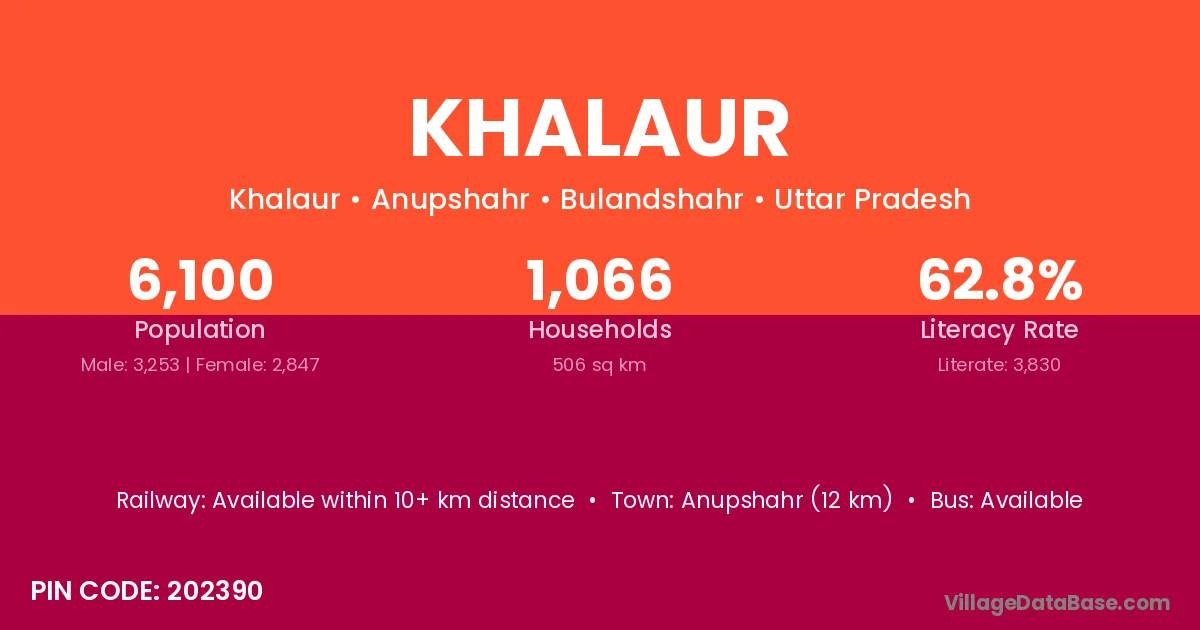 Anupshahr (12 km) is the nearest town to Khalaur village for major economic activities and is located approximately 12 km away.
