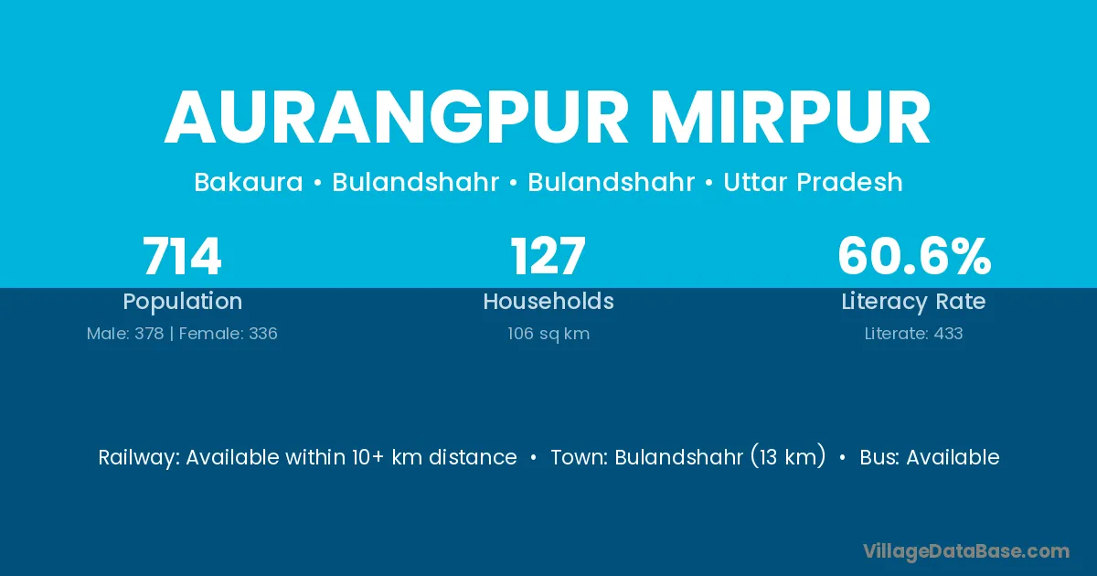 Bulandshahr (13 km) is the nearest town to Aurangpur Mirpur village for major economic activities and is located approximately 13 km away.