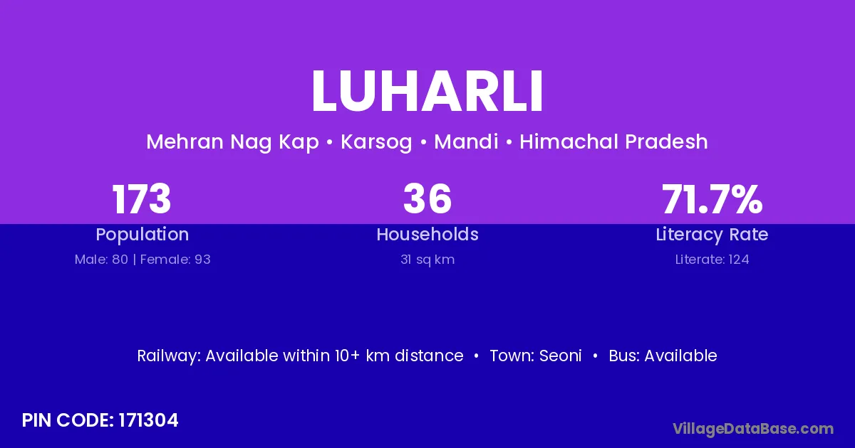 The literacy rate of Luharli village is 63.26%. Male literacy stands at 76.55% and female literacy at 48.95%.