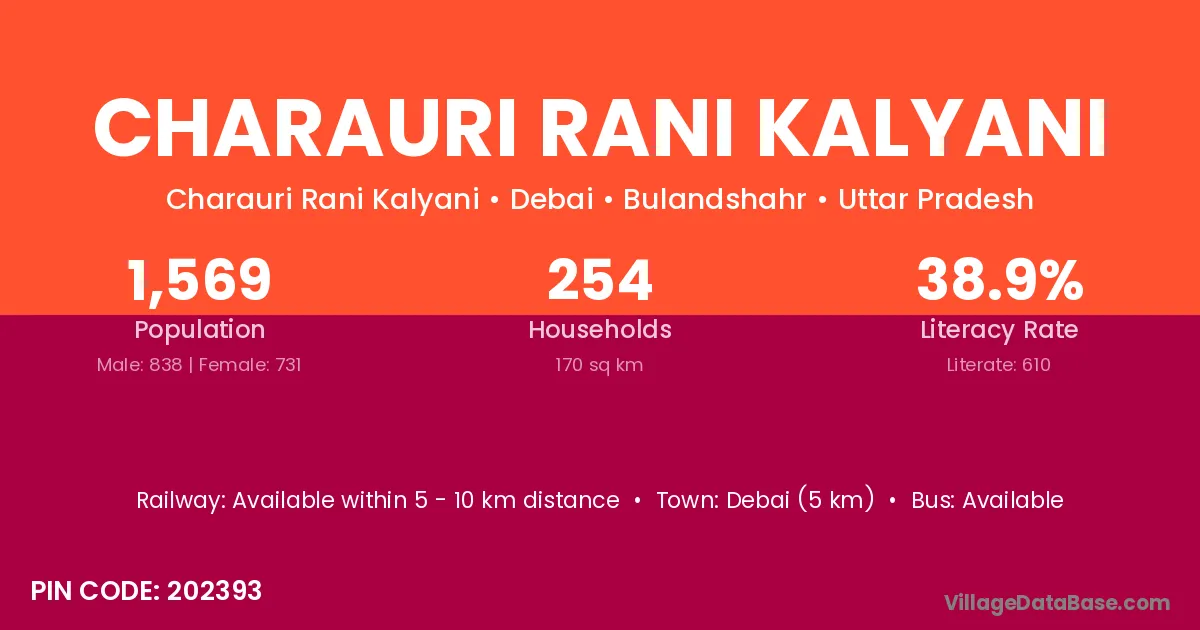 Debai (5 km) is the nearest town to Charauri Rani Kalyani village for major economic activities and is located approximately 5 km away.