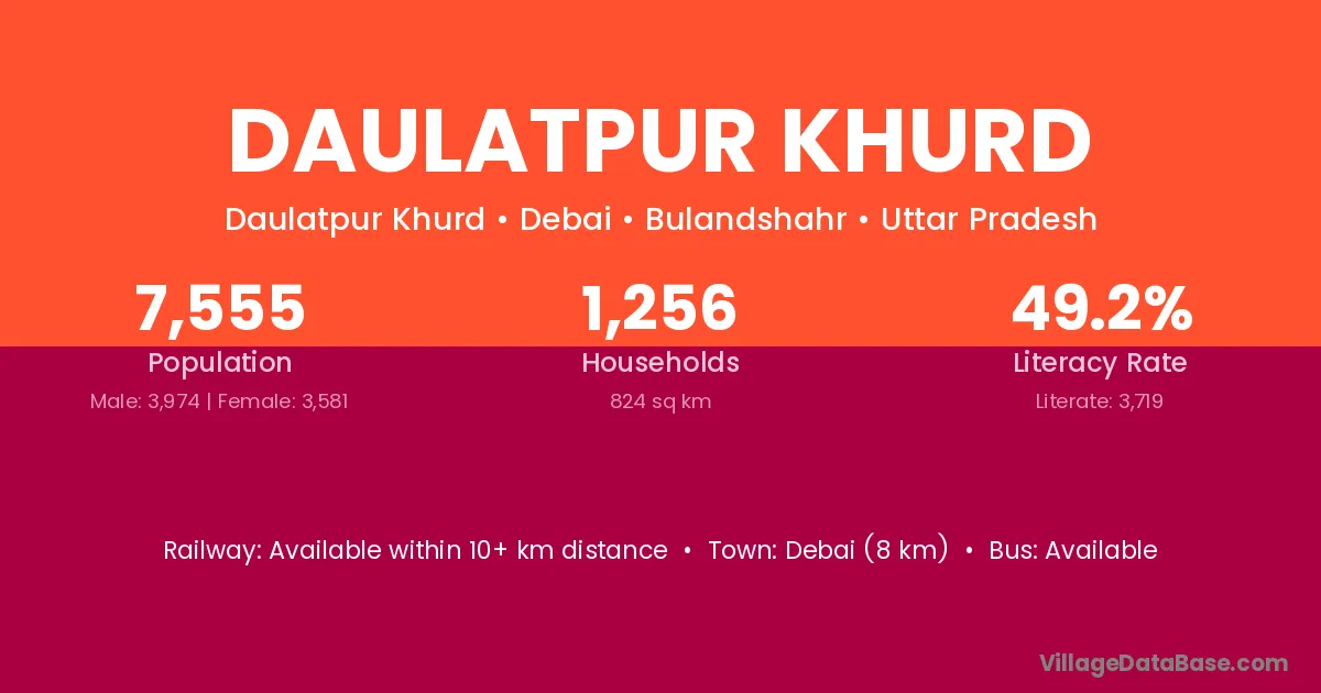 Debai (8 km) is the nearest town to Daulatpur Khurd village for major economic activities and is located approximately 8 km away.
