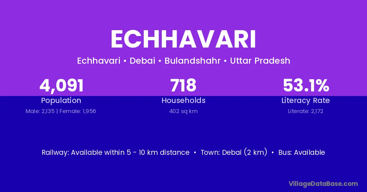 Debai (2 km) is the nearest town to Echhavari village for major economic activities and is located approximately 2 km away.