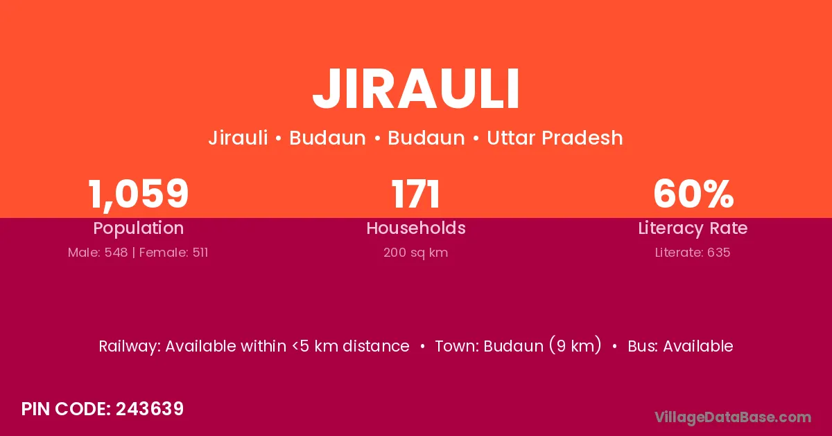 Debai (10 km) is the nearest town to Jirauli village for major economic activities and is located approximately 10 km away.