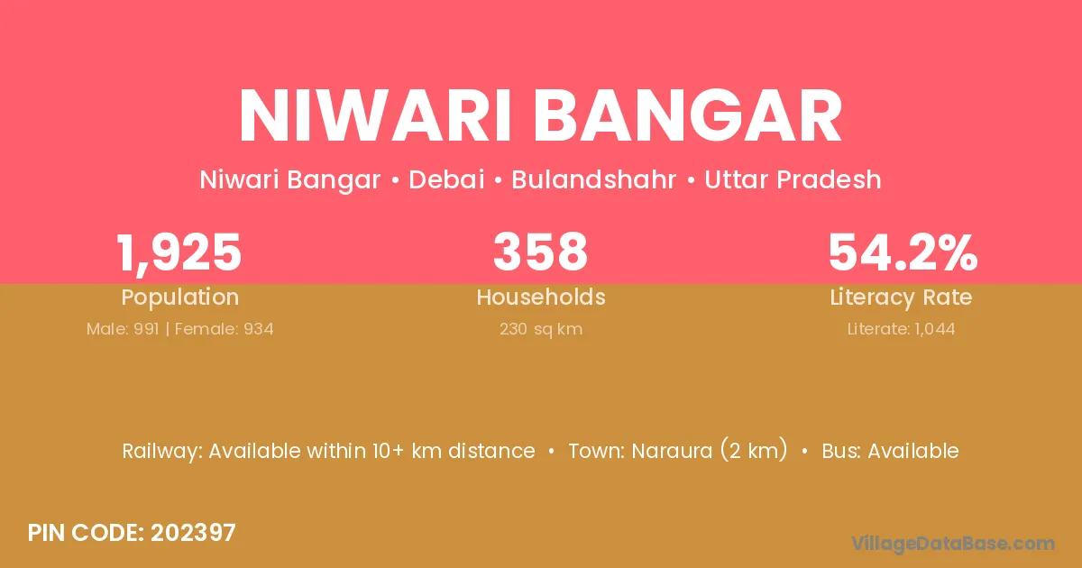 Naraura (2 km) is the nearest town to Niwari Bangar village for major economic activities and is located approximately 2 km away.