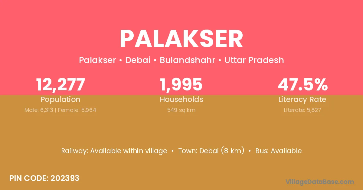 Palakser village has a total population of 12,277 people, of which 6,313 are males and 5,964 are females.