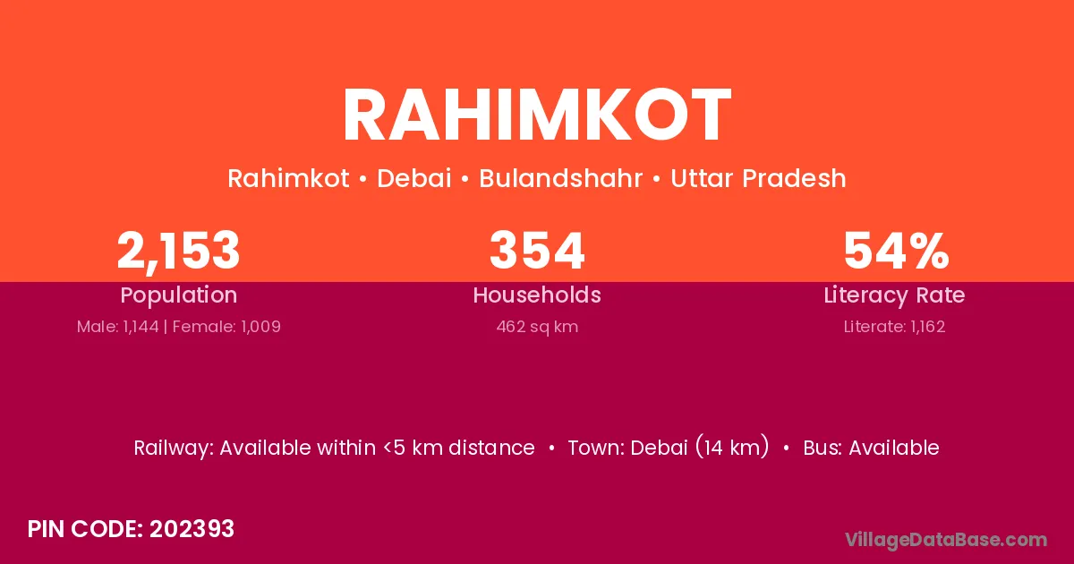 Debai (14 km) is the nearest town to Rahimkot village for major economic activities and is located approximately 14 km away.