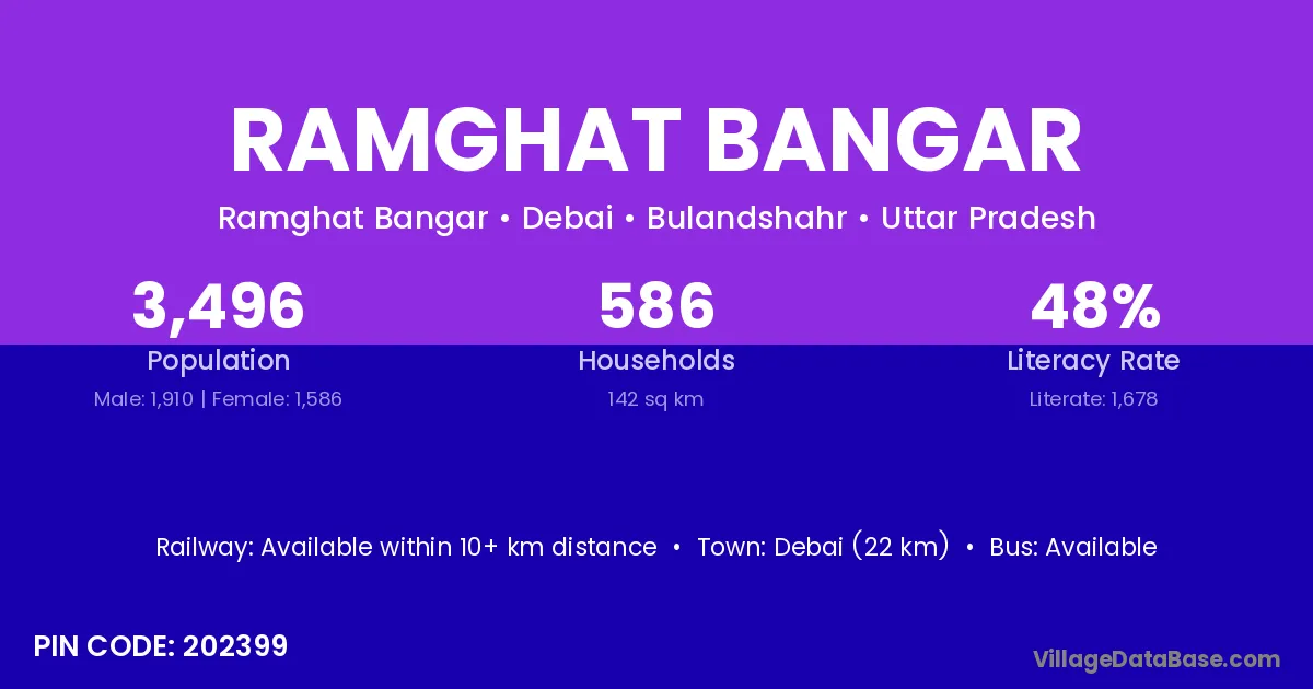 Debai (22 km) is the nearest town to Ramghat Bangar village for major economic activities and is located approximately 22 km away.
