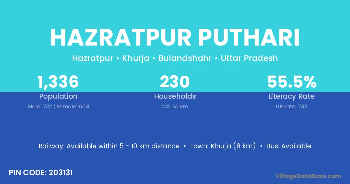 Khurja (8 km) is the nearest town to Hazratpur Puthari village for major economic activities and is located approximately 8 km away.