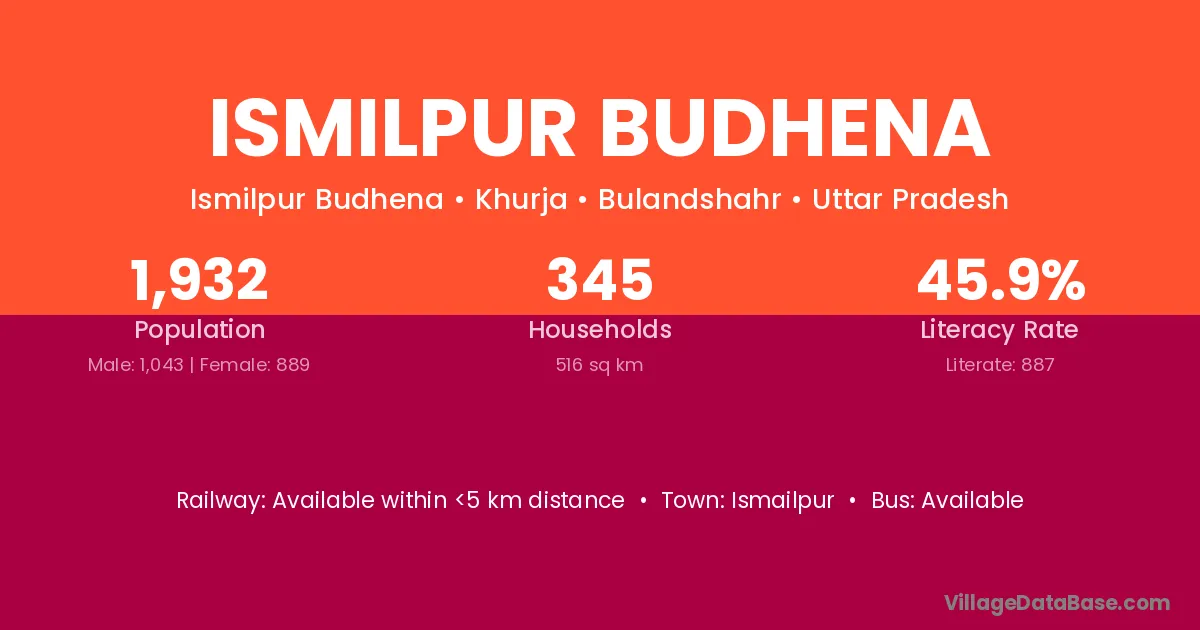 Ismilpur Budhena village has a total population of 1,932 people, of which 1,043 are males and 889 are females.