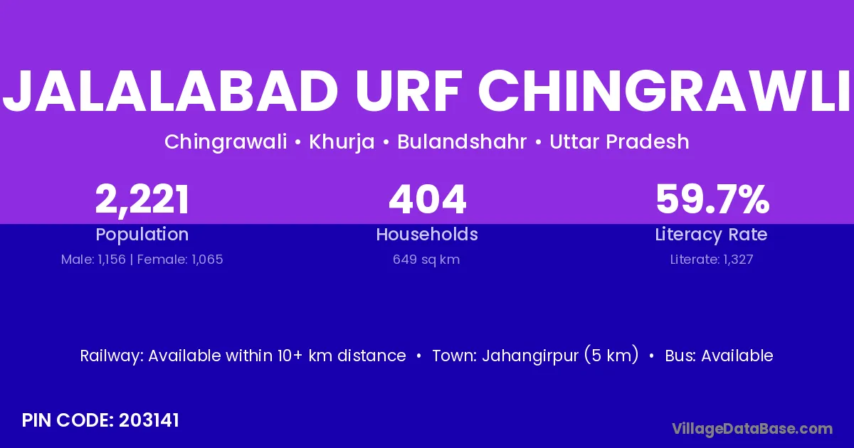 Jalalabad Urf Chingrawli village has a total population of 2,221 people, of which 1,156 are males and 1,065 are females.
