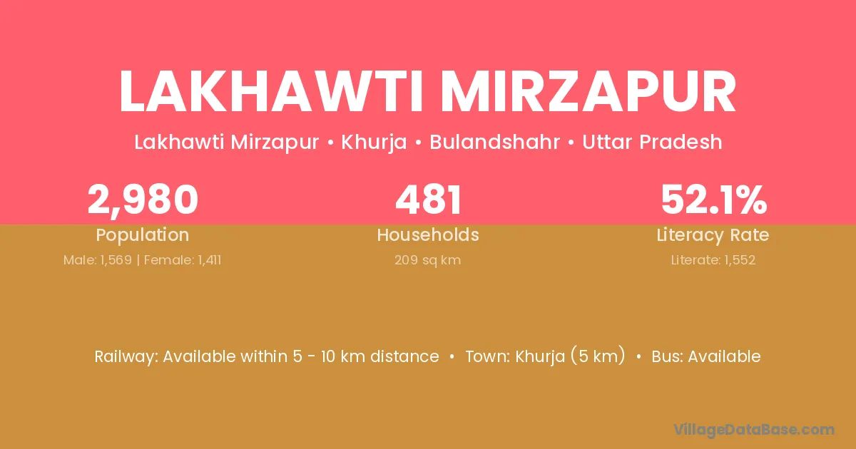 Khurja (5 km) is the nearest town to Lakhawti Mirzapur village for major economic activities and is located approximately 5 km away.