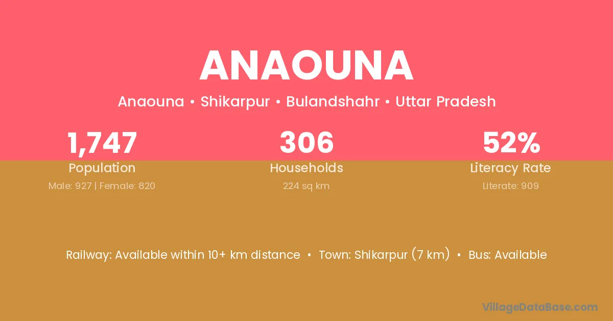 Shikarpur (7 km) is the nearest town to Anaouna village for major economic activities and is located approximately 7 km away.
