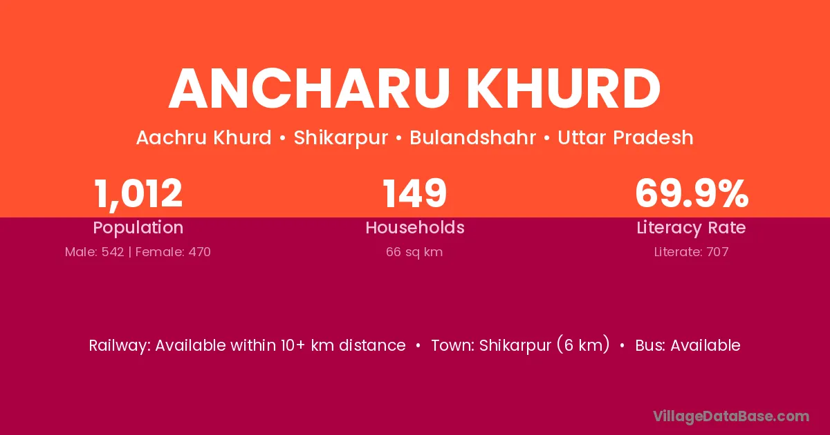 Shikarpur (6 km) is the nearest town to Ancharu Khurd village for major economic activities and is located approximately 6 km away.