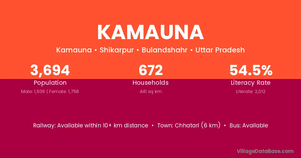 Kamauna village has a total population of 3,694 people, of which 1,936 are males and 1,758 are females.