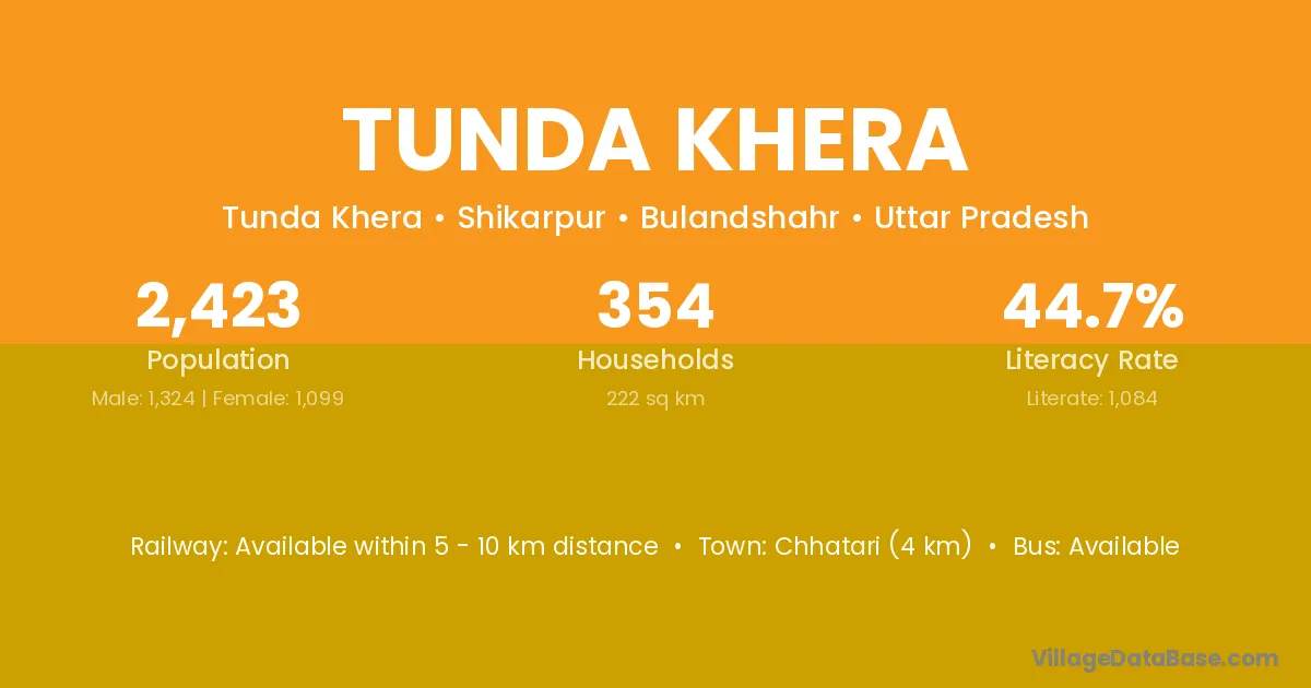 Chhatari (4 km) is the nearest town to Tunda Khera village for major economic activities and is located approximately 4 km away.