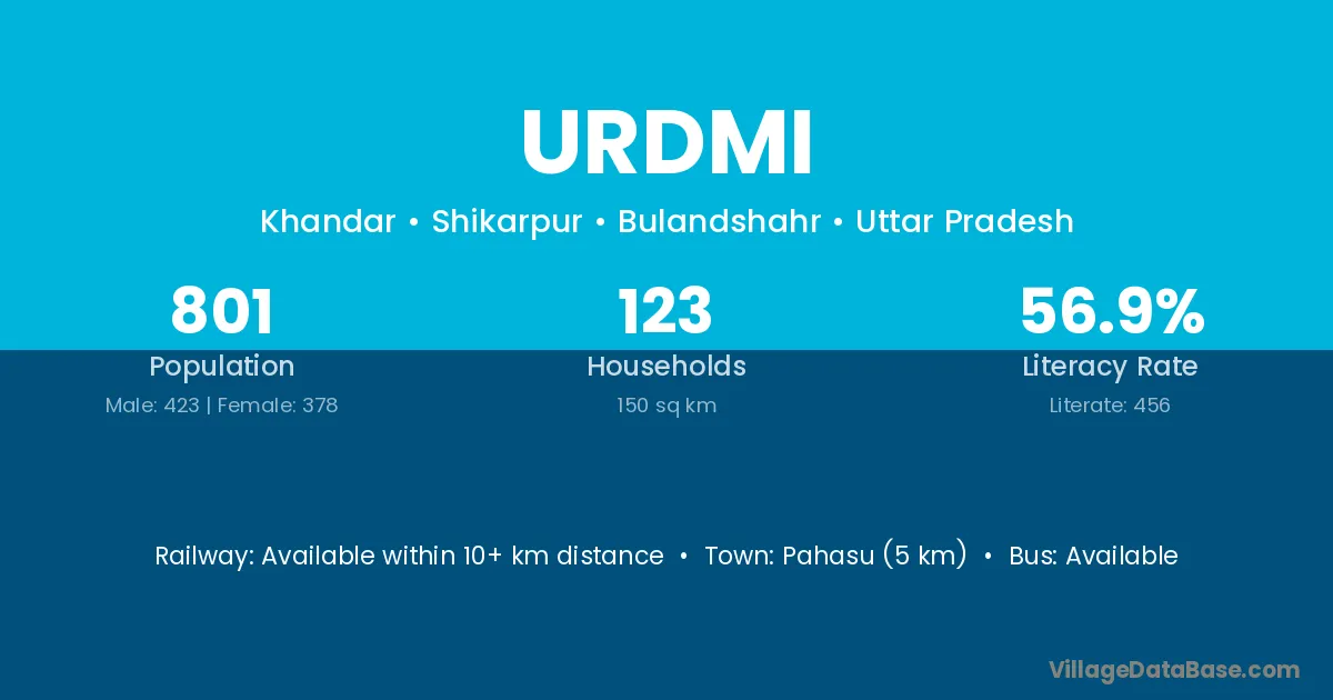 Pahasu (5 km) is the nearest town to Urdmi village for major economic activities and is located approximately 5 km away.