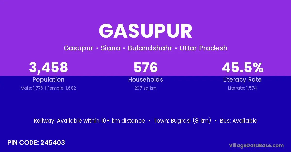 According to Census 2011 information, the village code of Gasupur village is 245403.