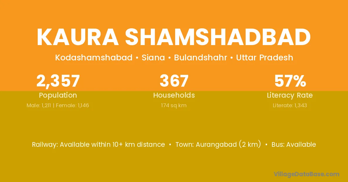 Aurangabad (2 km) is the nearest town to Kaura Shamshadbad village for major economic activities and is located approximately 2 km away.
