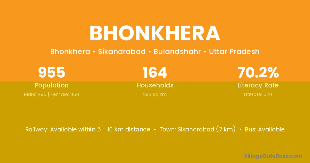 Sikandrabad (7 km) is the nearest town to Bhonkhera village for major economic activities and is located approximately 7 km away.