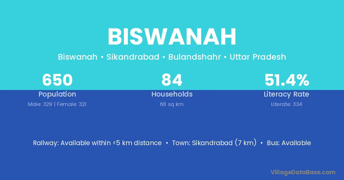 Sikandrabad (7 km) is the nearest town to Biswanah village for major economic activities and is located approximately 7 km away.
