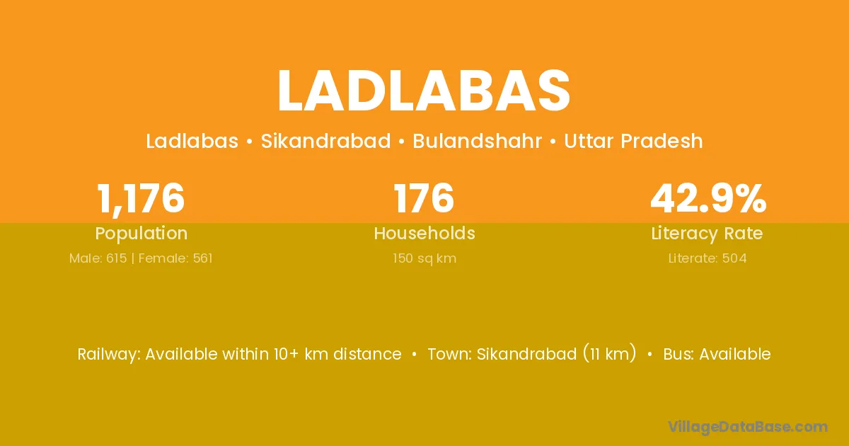 Sikandrabad (11 km) is the nearest town to Ladlabas village for major economic activities and is located approximately 11 km away.