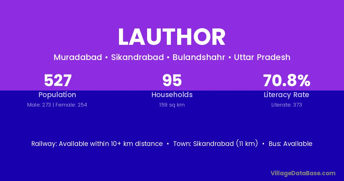 Sikandrabad (11 km) is the nearest town to Lauthor village for major economic activities and is located approximately 11 km away.