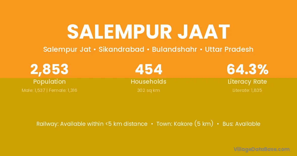 Kakore (5 km) is the nearest town to Salempur Jaat village for major economic activities and is located approximately 5 km away.