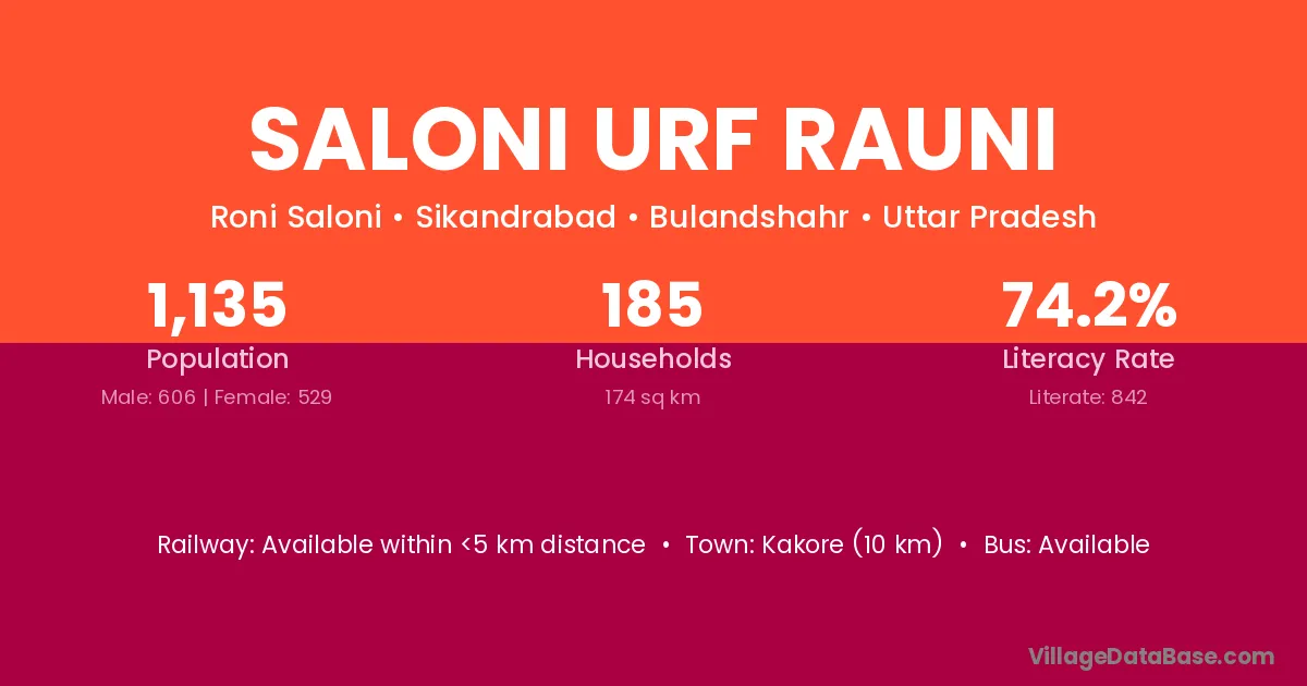 Saloni Urf Rauni village has a total population of 1,135 people, of which 606 are males and 529 are females.