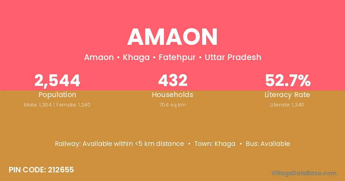 According to Census 2011 information, the village code of Amaon village is 232118.