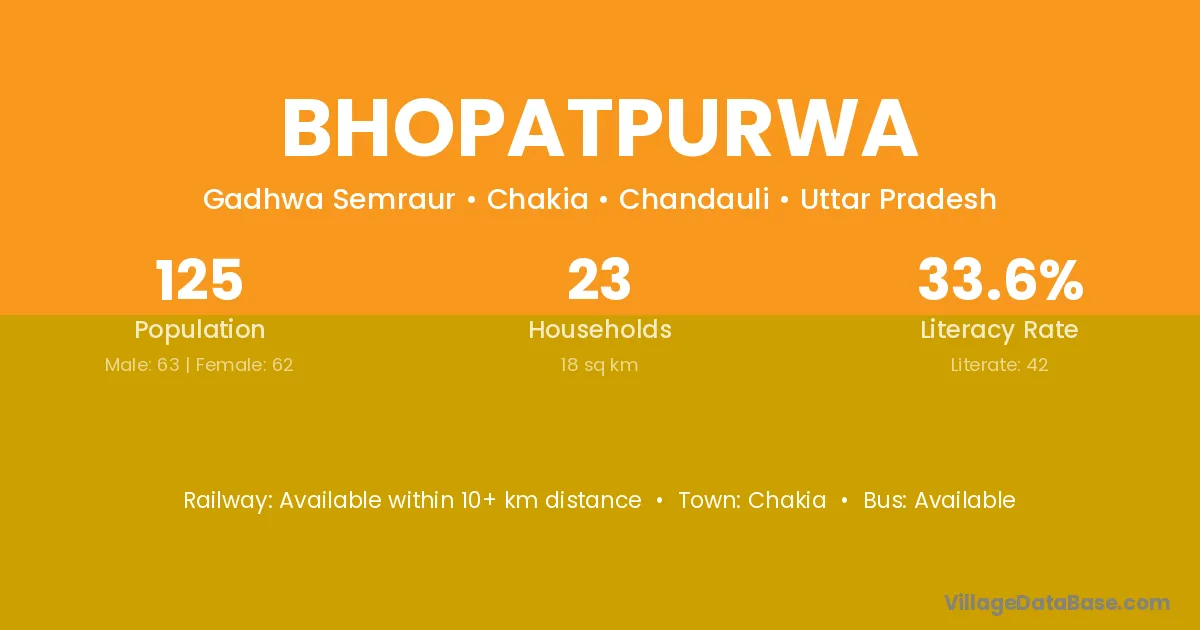 Bhopatpurwa village has a total population of 125 people, of which 63 are males and 62 are females.