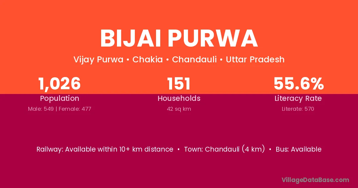 Bijai Purwa village has a total population of 1,026 people, of which 549 are males and 477 are females.