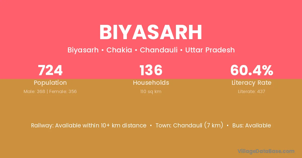 Chandauli (7 km) is the nearest town to Biyasarh village for major economic activities and is located approximately 7 km away.