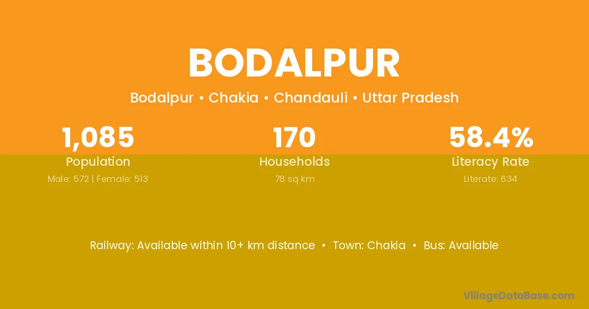 Chakia is the nearest town to Bodalpur village for major economic activities
