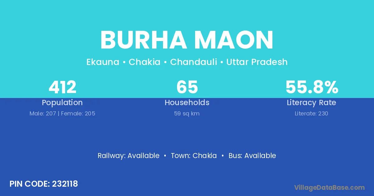 Burha Maon village has a total population of 412 people, of which 207 are males and 205 are females.