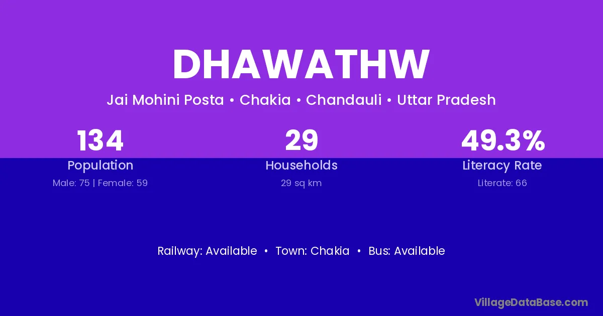 Dhawathw village has a total population of 134 people, of which 75 are males and 59 are females.