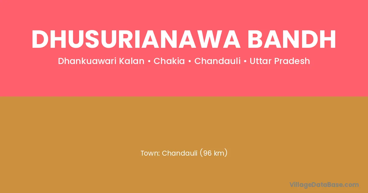 Chandauli (96 km) is the nearest town to Dhusurianawa Bandh village for major economic activities and is located approximately 96 km away.