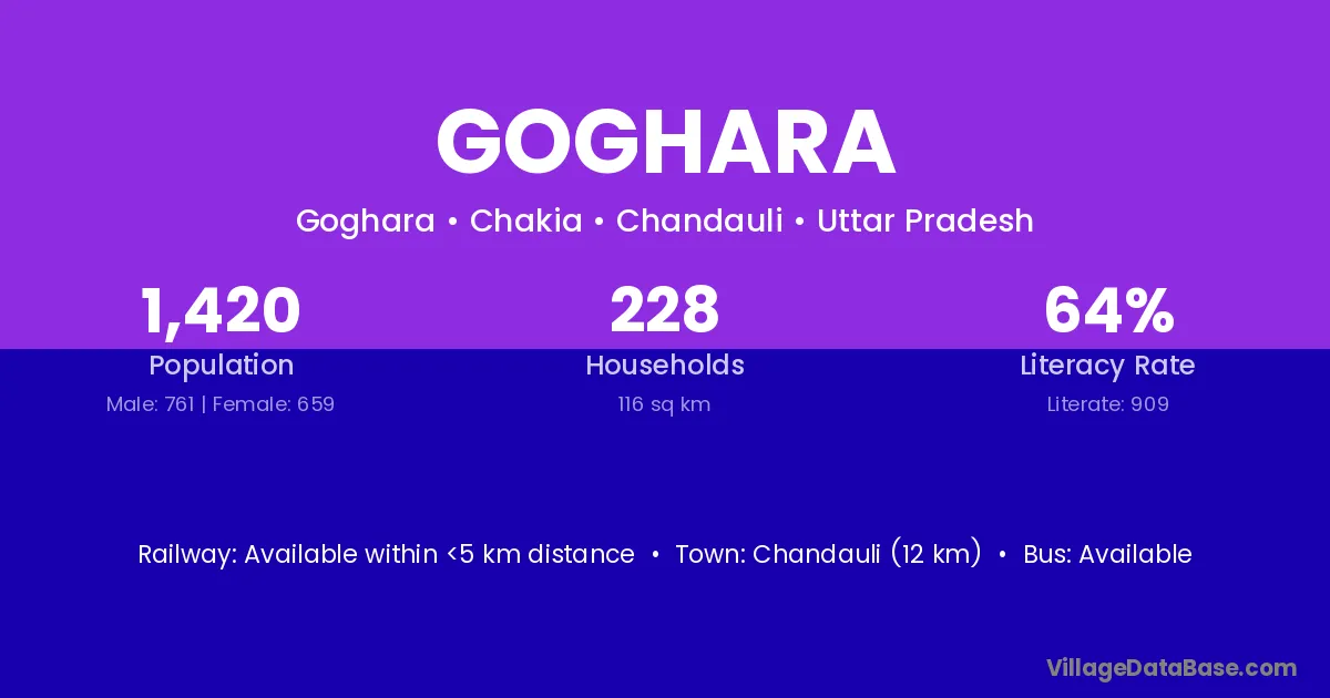 Chandauli (12 km) is the nearest town to Goghara village for major economic activities and is located approximately 12 km away.