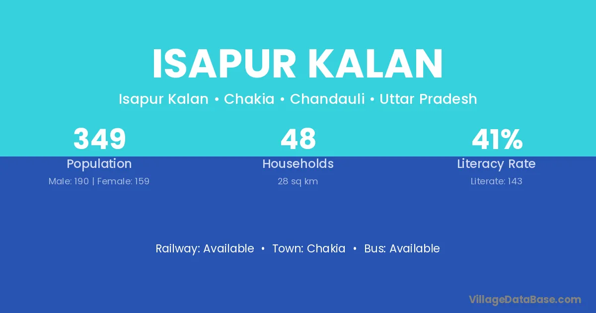 Isapur Kalan village has a total population of 349 people, of which 190 are males and 159 are females.