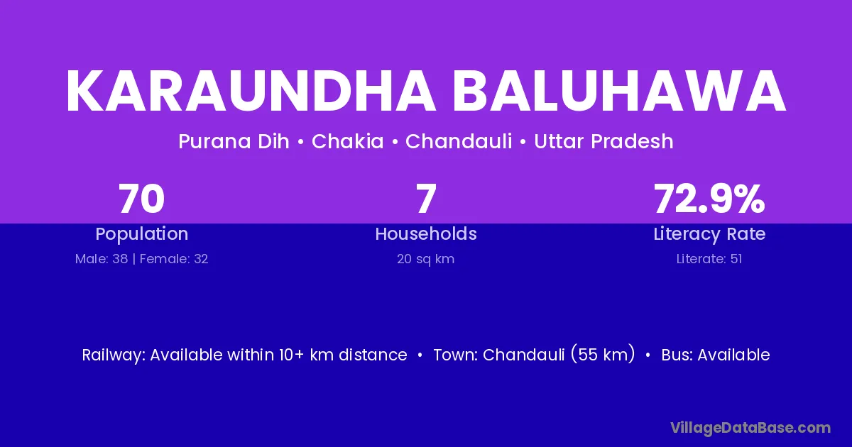 Chandauli (55 km) is the nearest town to Karaundha Baluhawa village for major economic activities and is located approximately 55 km away.