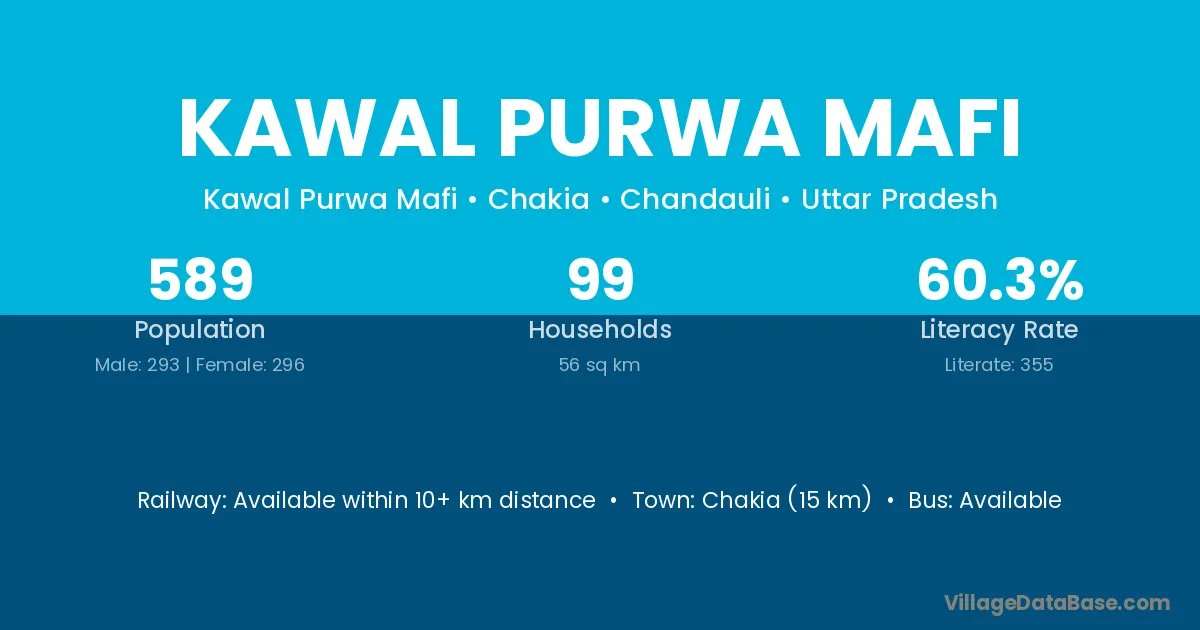 Kawal Purwa Mafi village has a total population of 589 people, of which 293 are males and 296 are females.