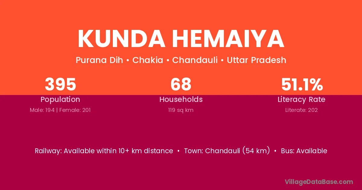 Kunda Hemaiya village has a total population of 395 people, of which 194 are males and 201 are females.