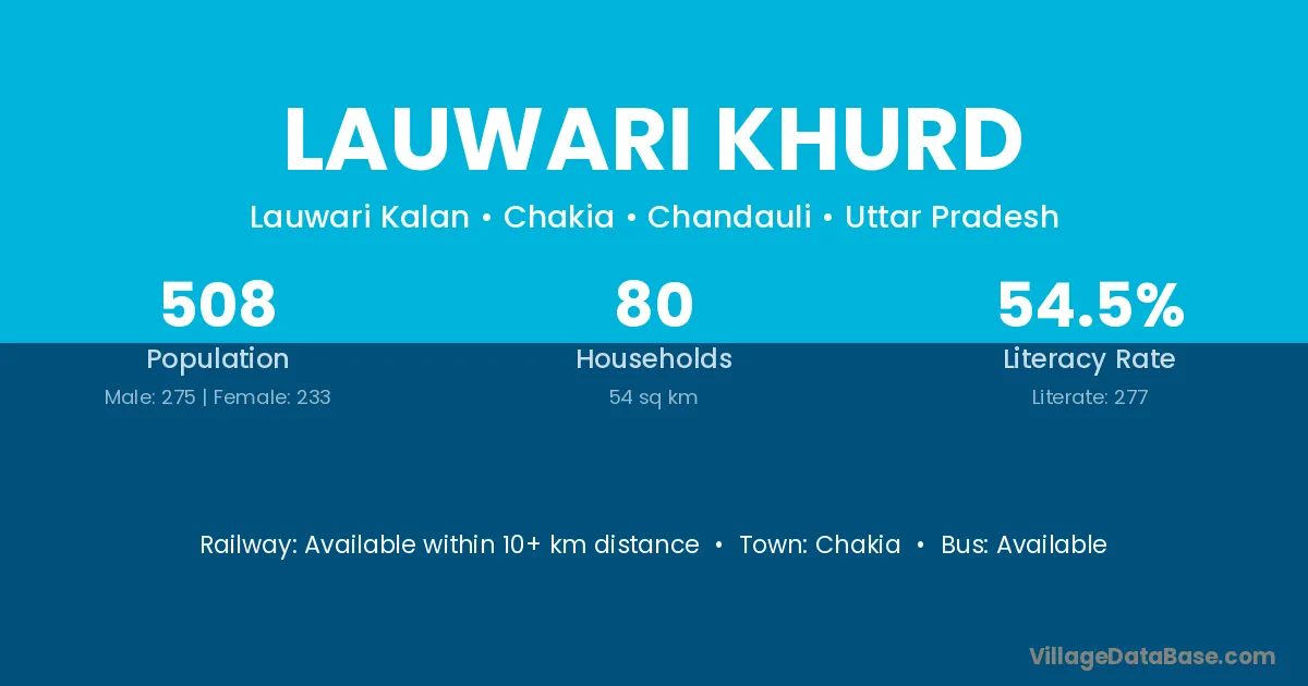 Lauwari Khurd village has a total population of 508 people, of which 275 are males and 233 are females.