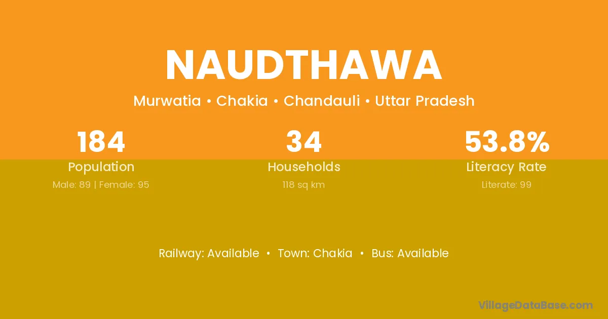 Naudthawa village has a total population of 184 people, of which 89 are males and 95 are females.