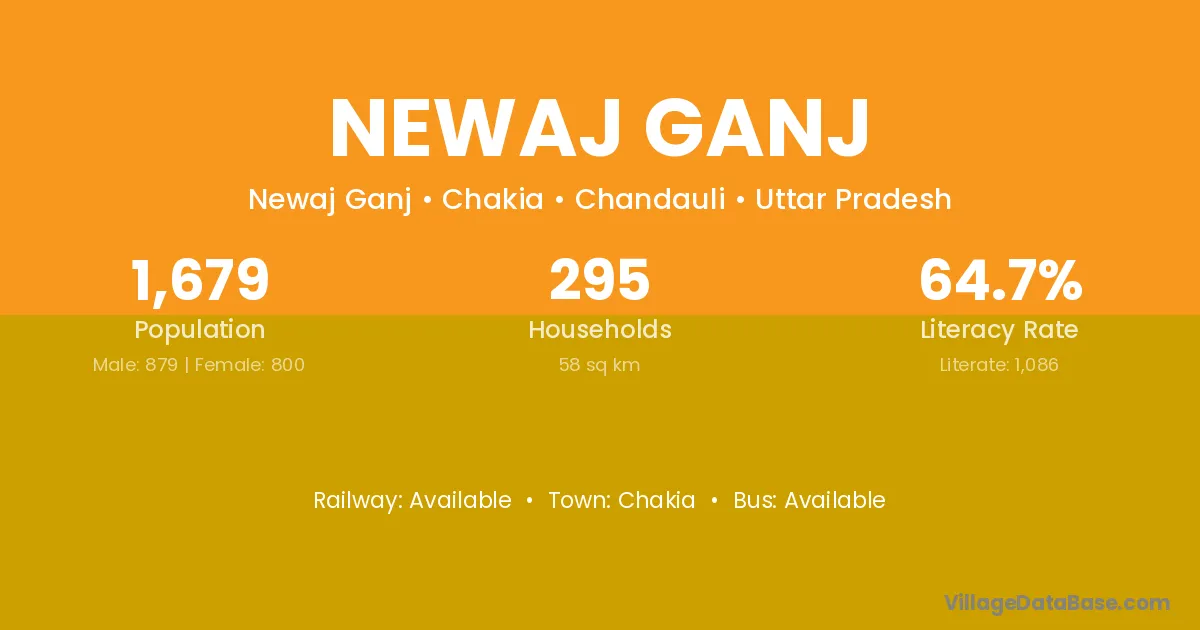 Newaj Ganj village has a total population of 1,679 people, of which 879 are males and 800 are females.