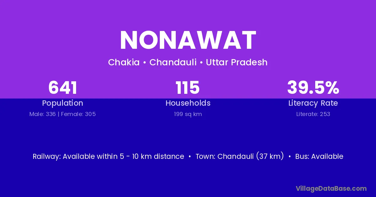 Chandauli (37 km) is the nearest town to Nonawat village for major economic activities and is located approximately 37 km away.