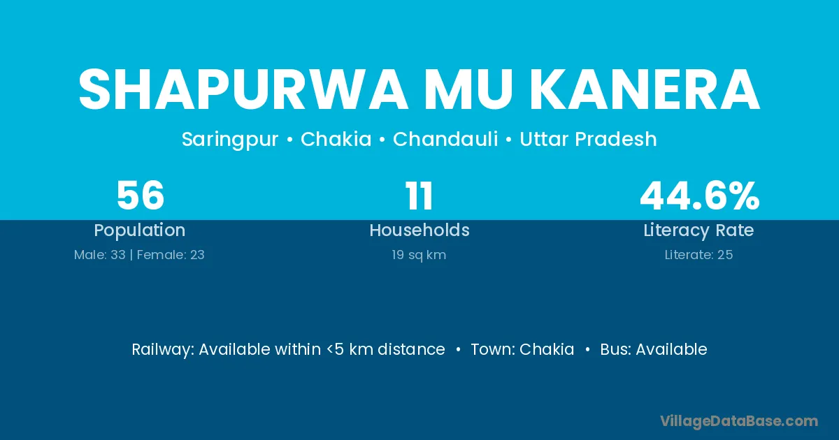 The literacy rate of Shapurwa Mu Kanera village is 44.64%. Male literacy stands at 54.55% and female literacy at 30.43%.