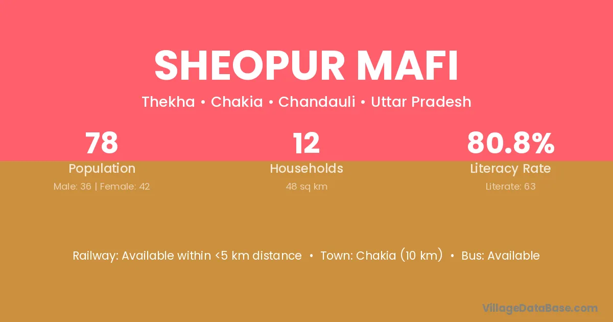 Sheopur Mafi village has a total population of 78 people, of which 36 are males and 42 are females.