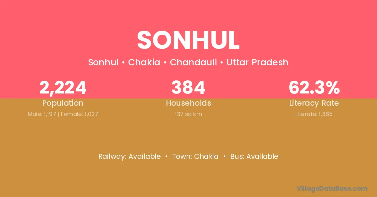 The literacy rate of Sonhul village is 62.28%. Male literacy stands at 71.26% and female literacy at 51.80%.