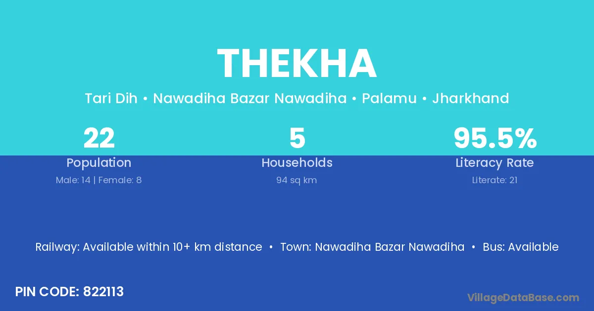 The literacy rate of Thekha village is 63.00%. Male literacy stands at 75.71% and female literacy at 49.43%.