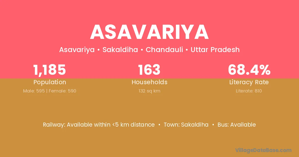 Asavariya village has a total population of 1,185 people, of which 595 are males and 590 are females.